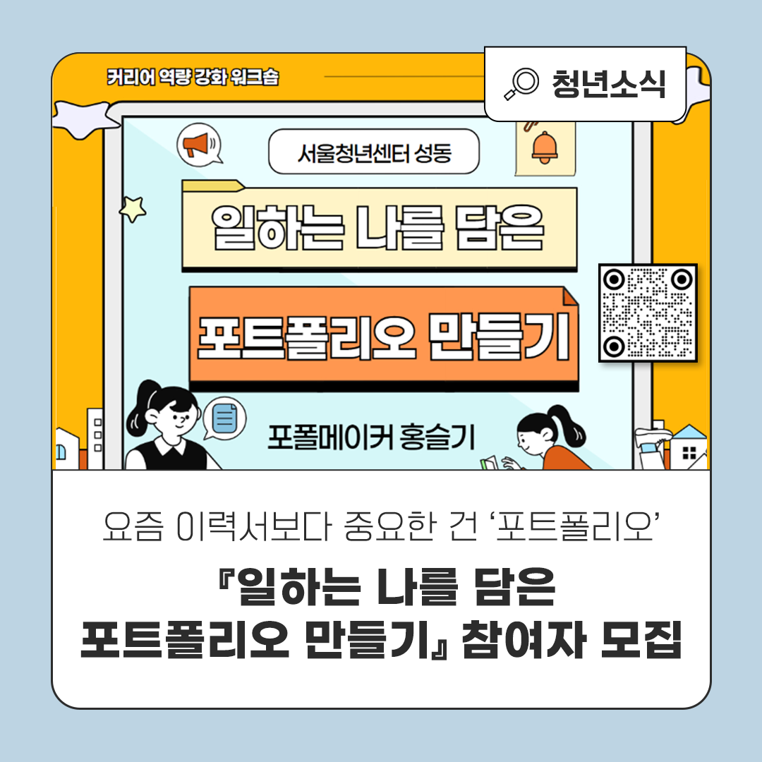 [청년소식] 요즘 이력서보다 중요하다는 ‘포트폴리오’ 함께 완성해 보자!『일하는 나를 담은 포트폴리오 만들기』 참여자 모집! (~11/27)