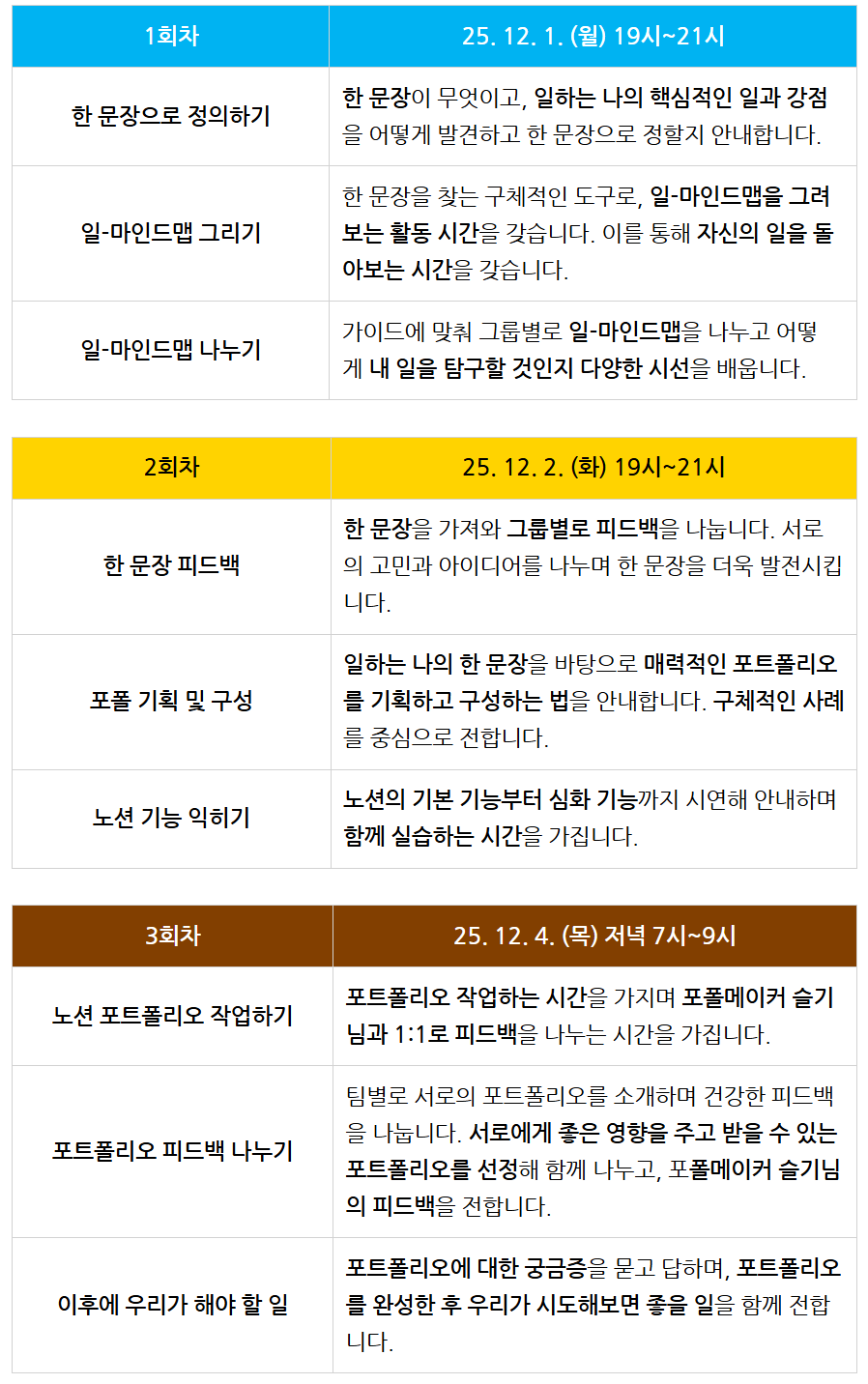 ☞ 3회차 : 25. 12. 4.(목) 저녁 7시~9시